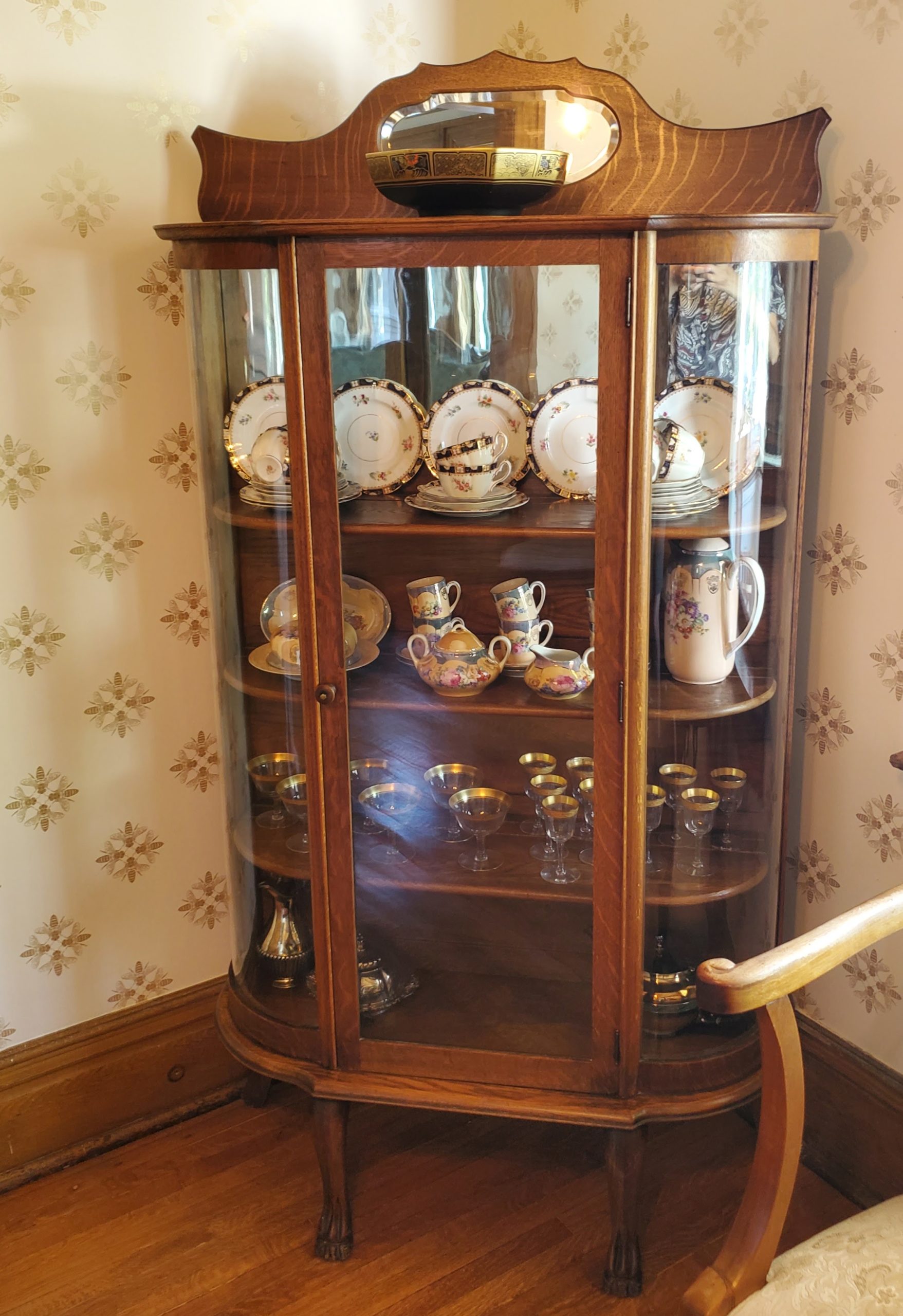 A china cabinet in the dining room of 153 Burrows Avenue, with the homes original plate rail sitting just above it. Heritage Winnipeg.
