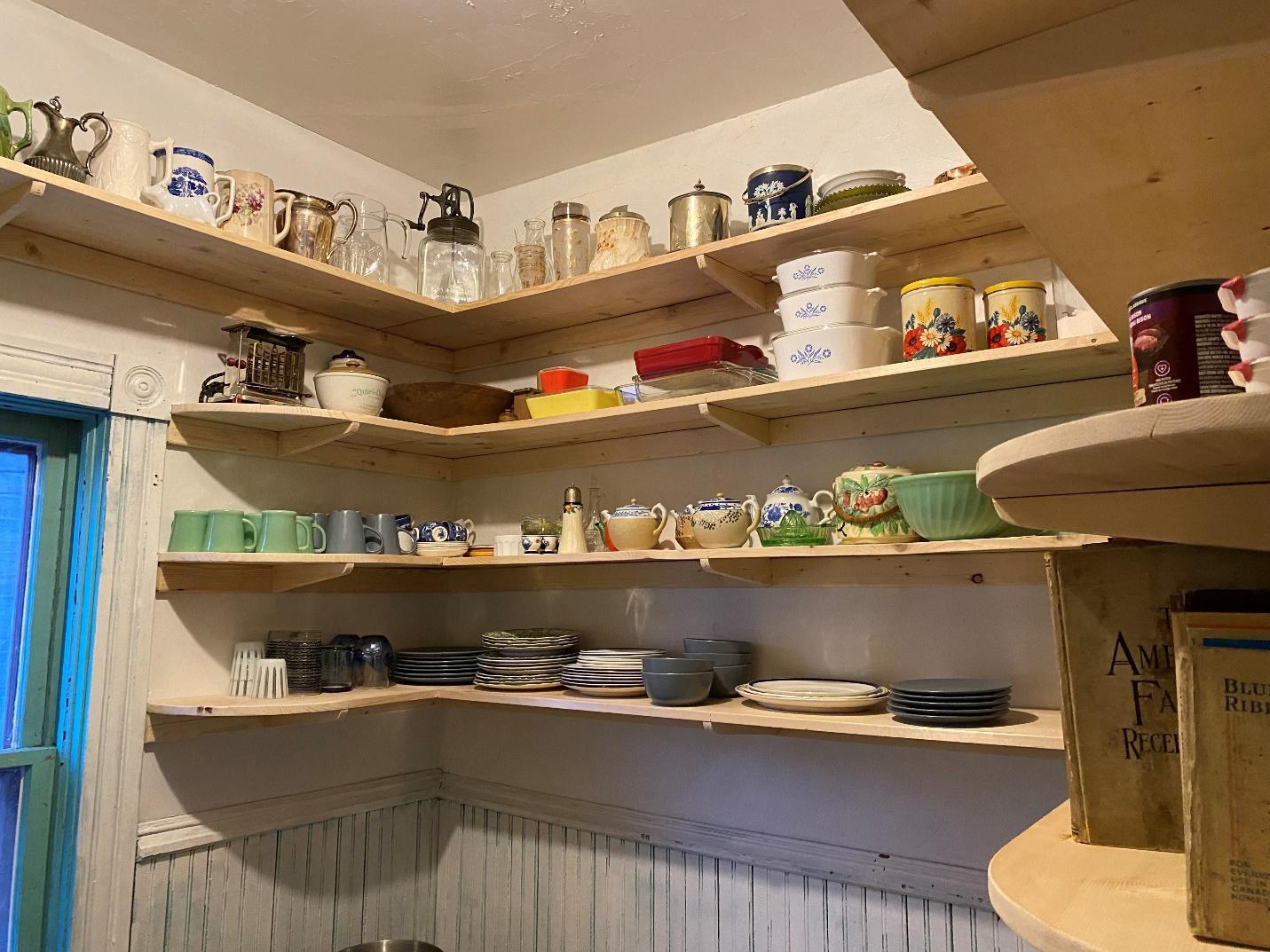 A collection of modern and antique cookbooks in the pantry at 153 Burrows Avenue. Heirtage Winnipeg.