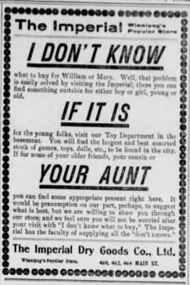 [3] “The Imperial, Winnipeg’s Popular Store” Winnipeg Tribune 1901-12-14 (4)