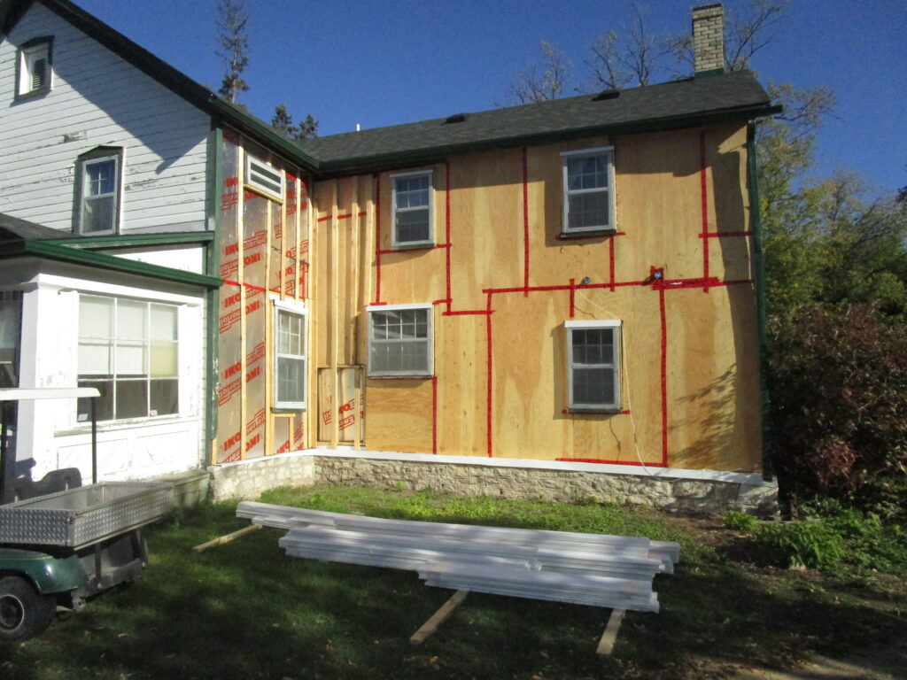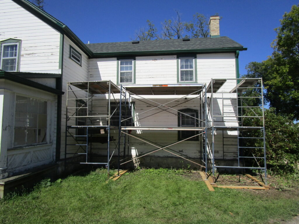 Phase 1 of the Bleak House capital renewal project is complete! Mostly undertaken during summer 2025, the project involved replacing the roof and eavestroughing, removing the wood siding and sheeting on the two southeast facades, abating the vermiculite insulation, and making any necessary repairs to the framing of the 1874 home at 1637 Main Street. New insulation and sheeting was then installed before the house was sealed up with new siding, milled to match the existing siding as best as possible. Lead by the City of Winnipeg’s Municipal Accommodations Division, funding was secured through the Gail Parvin Hammerquist Fund with supplemental funds from the Municipal Accommodations Division. A final inspection of the work by the City of Winnipeg’s Heritage Planner and Municipal Accommodations team took place during the second week of November 2025, marking the formal conclusion of Phase 1.