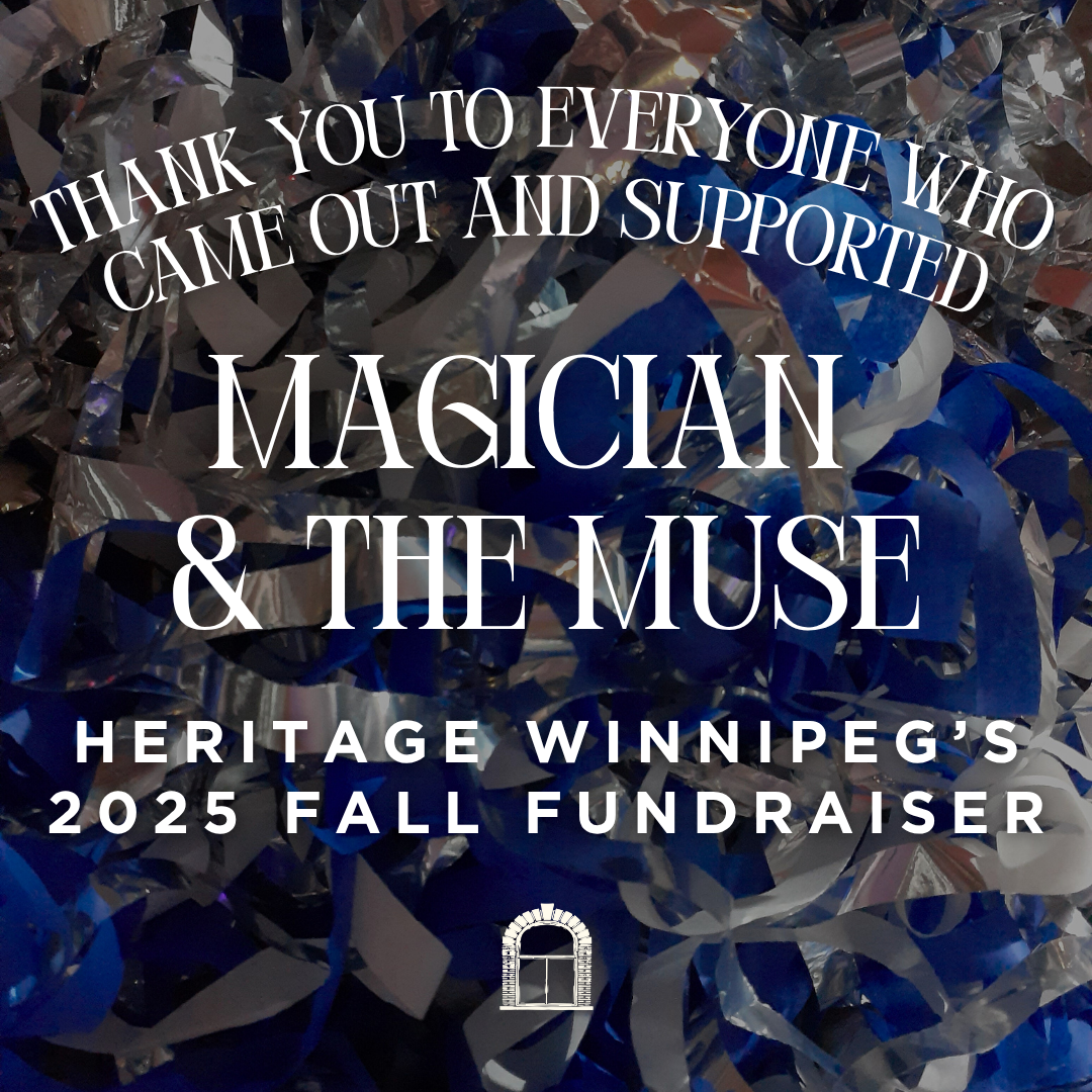 Thank you to everyone who joined us on Friday, October 3rd, 2025, for Heritage Winnipeg’s Fall Fundraiser, Magician & The Muse, in the historic Millennium Centre at 389 Main Street. It was a fun evening in the gorgeous heritage building, with good friends and outstanding entertainment. It was wonderful to see so many people gathered for an important cause – supporting advocating for and celebrating Winnipeg’s built heritage. Heritage Winnipeg would like to sincerely thank everyone who contributed to making this event such a great success. From the sponsors and fundraising committee to the volunteers and guests, we could not have hosted such a fantastic event without you! Your contributions will allow Heritage Winnipeg to continue our important work ensuring Winnipeg’s built heritage helps build a vibrant and sustainable community. Thank you! ❤️