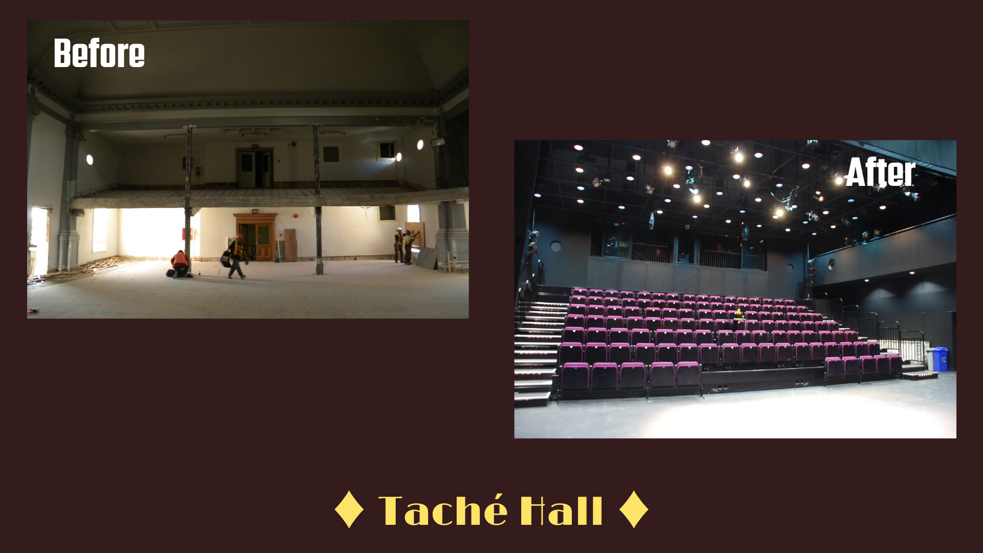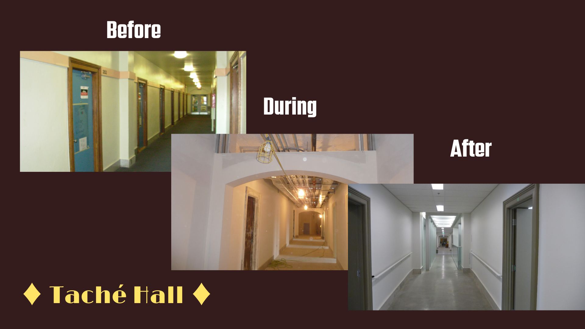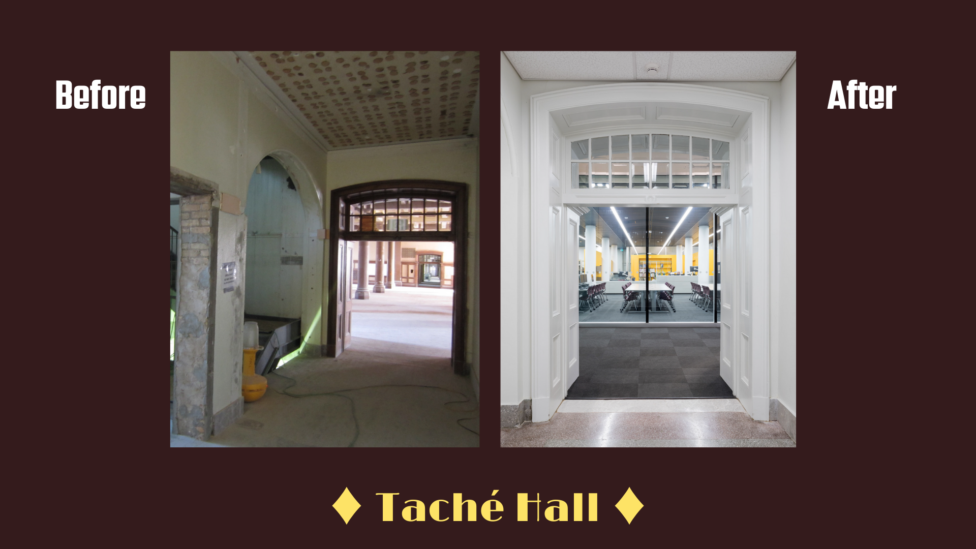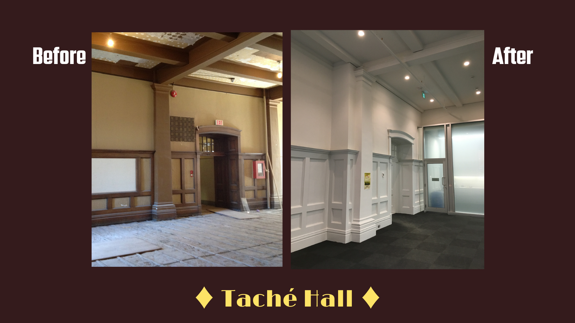 buildings and operated as a student residence, initially designed for the Manitoba Agricultural College. The Georgian-style building became a well-loved fixture, housing University students until 2008. Beginning in 2013, Taché Hall underwent major renovations, becoming a new academic space for the Faculty of Music, the School of Art, and the theatre program. The redevelopment made use of the original residential layout, repurposing the space for its new life.