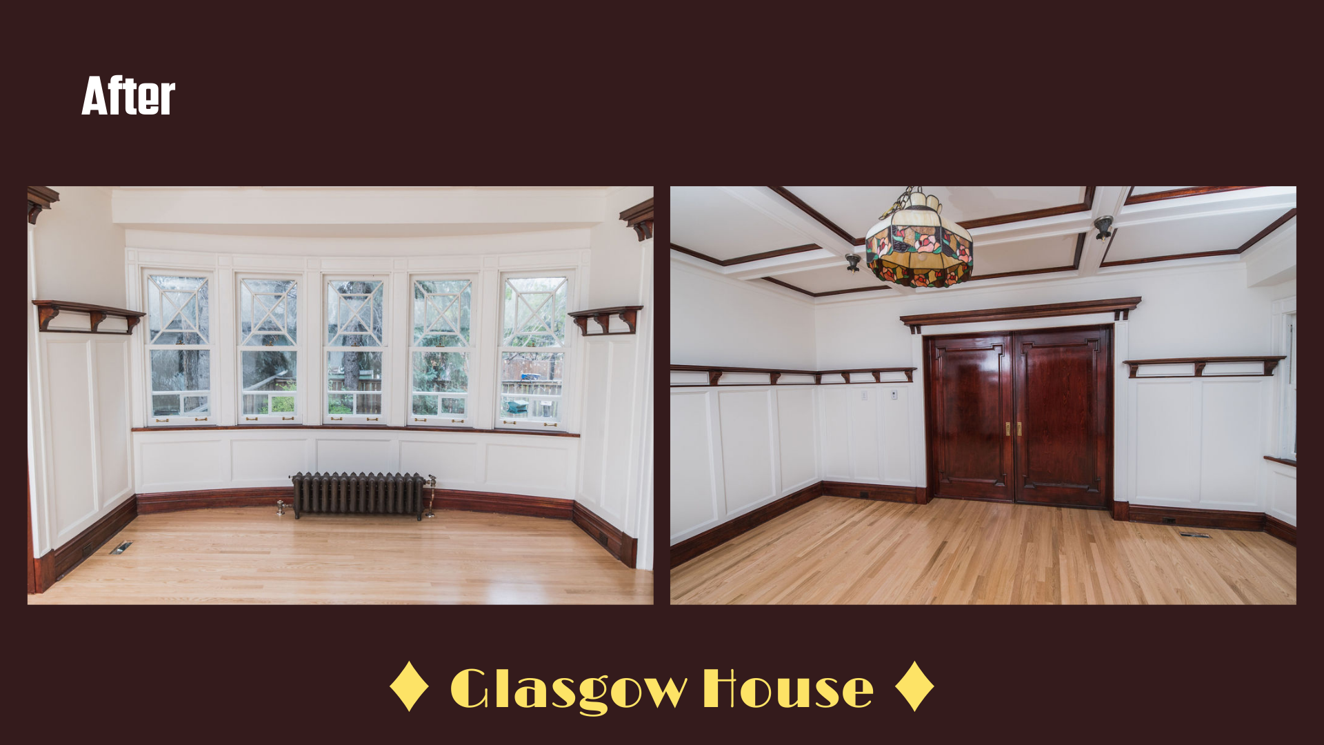 This historic home at 34 Middle Gate has been a staple of Armstrong’s Point since its construction in 1911. Designed by Cyril W. U. Chivers, the home is a fine example of craftsman style, with its limestone porch still intact. From the 1980s to the 2020s, the house was lovingly cared for by the Thomson family. In 2020, a chimney fire led to intense damage to the original woodwork, plasterwork, and finishes. The homeowners and Priority Restoration painstakingly restored each element and took the opportunity to replace the plumbing and wiring inside the house. Wins Bridgman, the current owner of the Glasgow House, nominated the Thomson family for this award in honour of their decades of dedication.