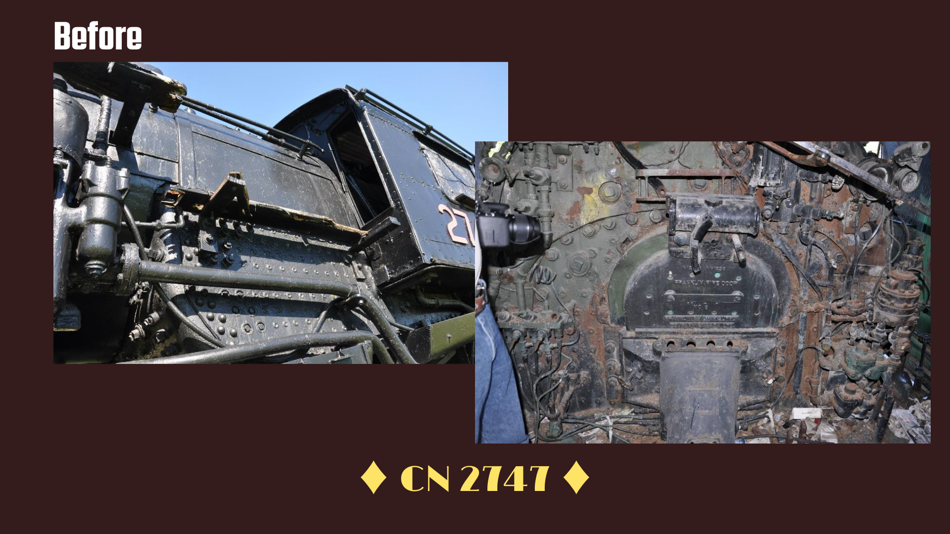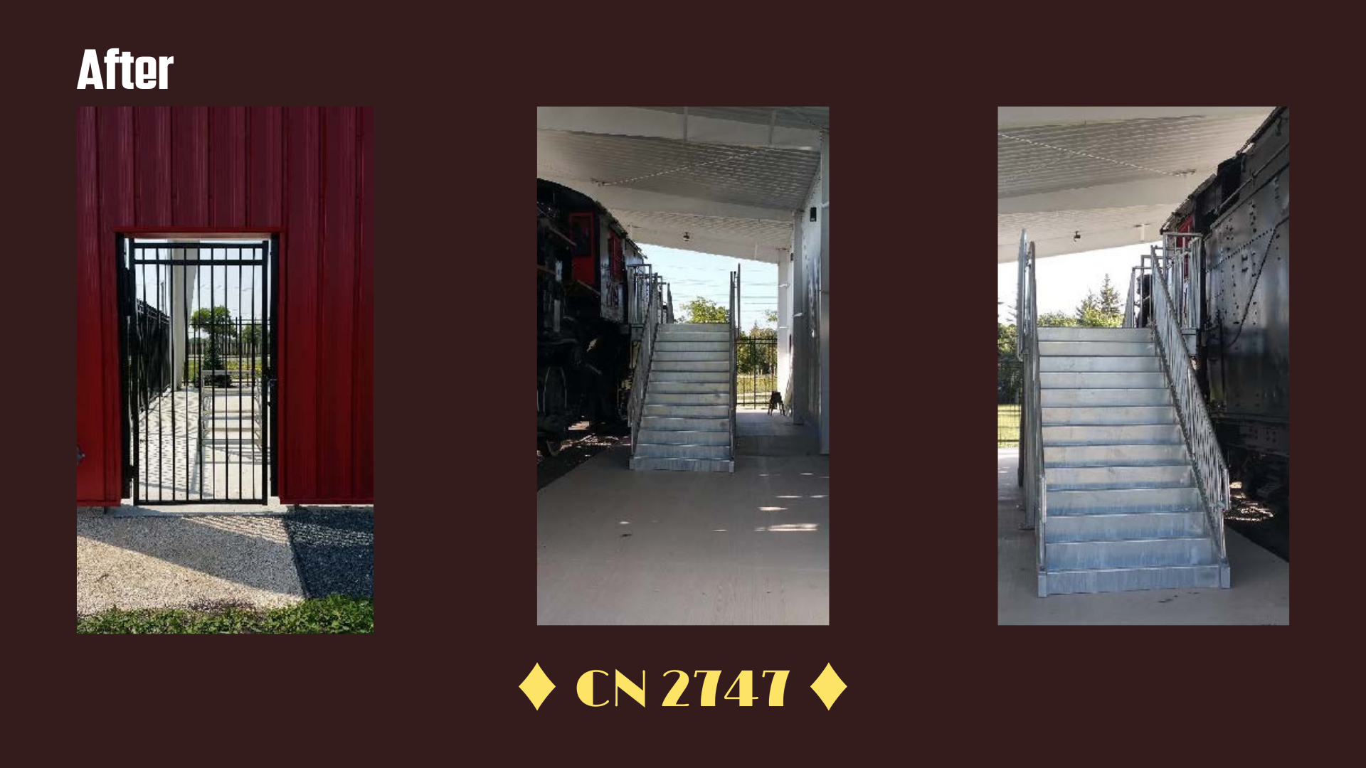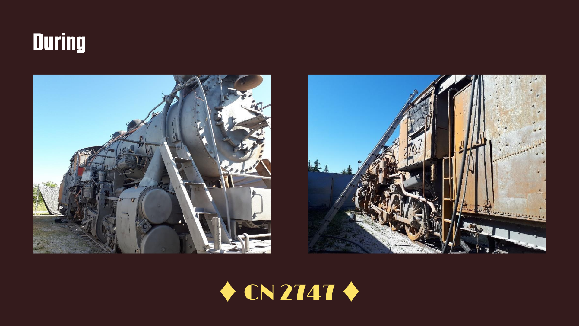 As the first steam locomotive built in Western Canada by the Canadian National Railway, this 1926 train holds great historical significance. The engine worked in both Alberta and Manitoba until its retirement in 1960, when it was saved from becoming scrap and was given a home in Kiwanis Park (now Rotary Heritage Park). When it was acquired by the Transcona Museum in 2015, the train was in rough condition, plagued by vandalism, theft, and deterioration. Volunteers began working to preserve and repair the engine, making it possible for visitors to learn its history up close. An enclosure was designed to protect CN 2747 from damage, and the engine was officially reopened in July of 2024.
