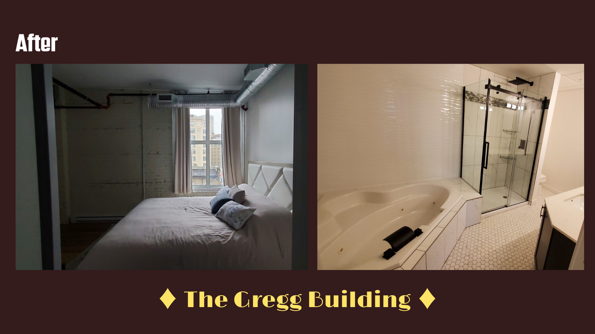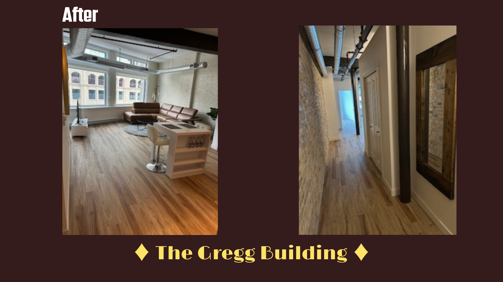 Designed by James Henry Cadham in 1904, the Gregg building is one of a collection of Romanesque Revival warehouses in the Exchange District National Historic Site. The warehouse was owned by salesman George Robinson Gregg and was home to the Winnipeg Branch of his import-export business for many decades. In 2019, the Gregg Building was acquired by Jay Knysh, who saw great potential in its sturdy foundation. It was then that he began converting the warehouse into residential suites with commercial suites, preserving and restoring the historic elements of the building. The Gregg Building Lofts officially opened in the fall of 2024, bringing new residents to the historic Exchange District.