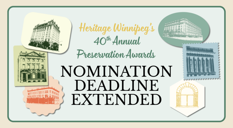 The nomination deadline for Heritage Winnipeg’s 40th Annual Preservation Awards has been extended to Friday, January 30th, 2026. This is your chance to celebrate the people, organizations and buildings projects that go above and beyond in the conservation of Winnipeg’s built heritage! Anyone can make a nomination – fill out the nomination form yourself or…