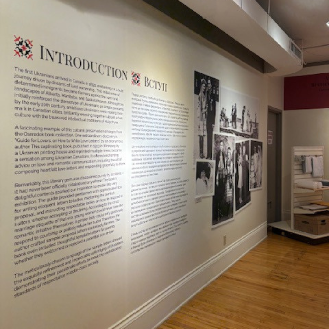 Heritage Winnipeg’s Executive Director, Cindy Tugwell, attended the grand opening of Oseredok Ukrainian Cultural and Educational Centre’s newest exhibit, Love Letters: A Timeless Experience, on October 23, 2025. Located in the historic 1913 building at 184 Alexander Avenue until spring 2026, the immersive event invites guests to “wander through captivating displays that celebrate the timeless art of expressing love through letters”.
