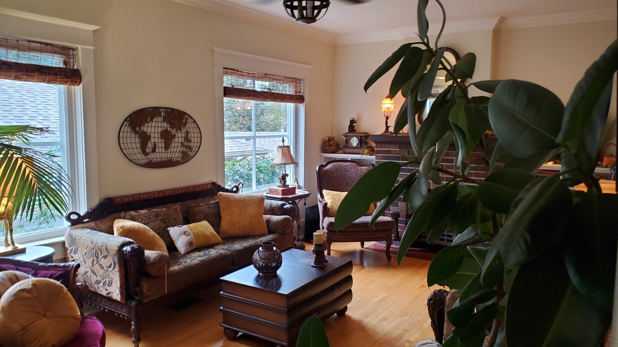 “It’s over 100 years old, so there’s always something. When I moved in here, 27 years ago, we put in new windows, got a new roof and all those things. Suddenly those things are old now, thirty years later. Maintenance is always a big deal. Lots of trees, I gotta worry that the roots don’t get into the waterline, all those kinds of things. It’s an old house, it’s shifting. Some of the trees are getting out of control and some of them are dying.”